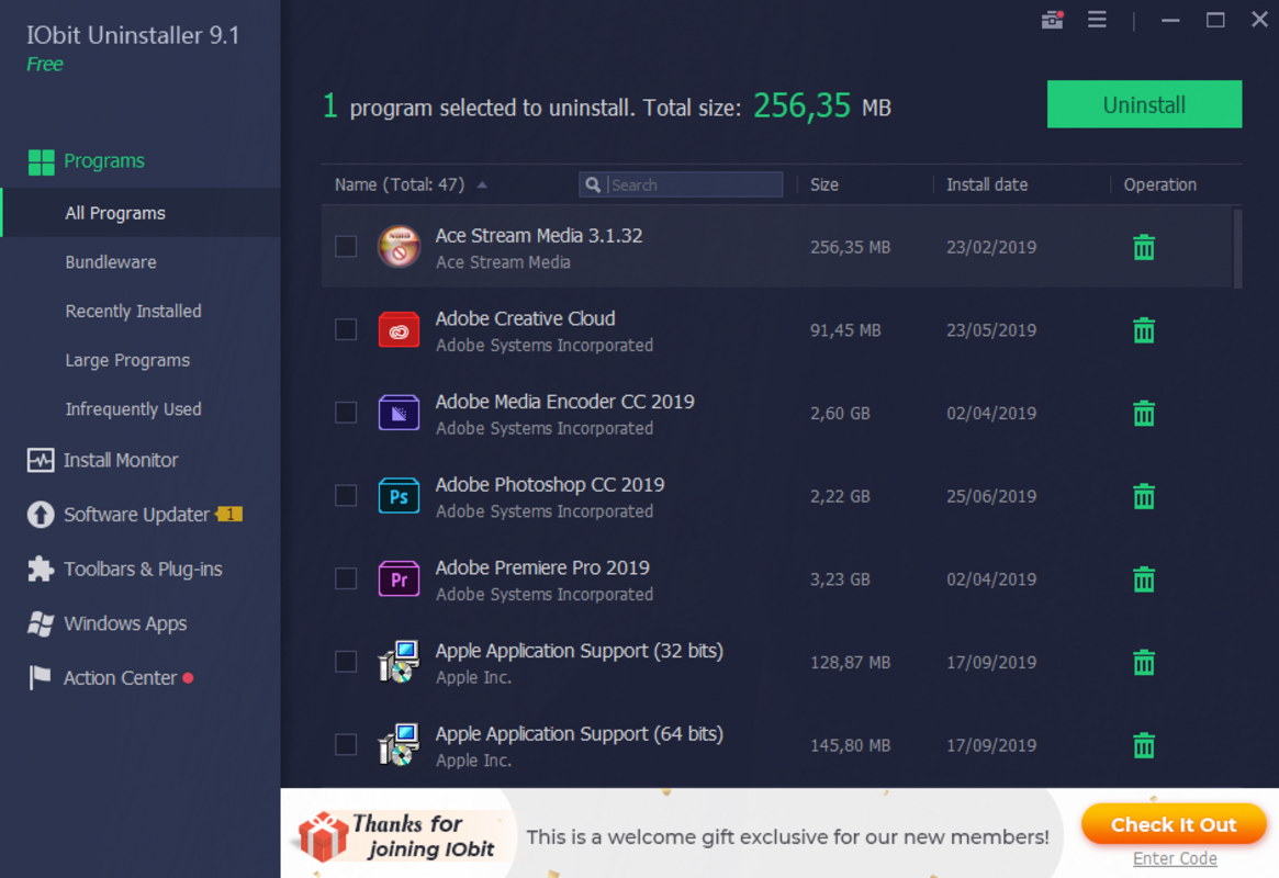 IObit Uninstaller はユーザーフレンドリーなインターフェイスを特長としており、さまざまなレベルの専門知識を持つユーザーが使用できます。